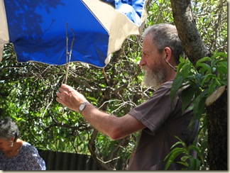 Harry explained how large scale Agriculture operates like hydroponics, so much of the research and the products designed for use there are not appropriate to the backyard gardener. He has used the granite dusts from Fisher’s Creek in Central Qld., and All Rock from Southern Qld., and he mentioned a new paramagnetic product from Mt Shank near Mt Gambier in South East S.A. which scientists are claiming improves the soil biology but can’t explain why. Harry feels by getting the bugs right, the goodness locked in the soil, wherever it comes from, can be released and used by the plants. As for fertilizer, Harry said it should only be added if the soil itself looks good and if it has a nice rich layer. 80% of the trees feeding is from that first foot of soil, and this is also where oxygen is available. Harry suggested if you do want to grow plants such as lettuce, in summer, in the shade of your fruit trees, you should plant them in raised planting boxes.